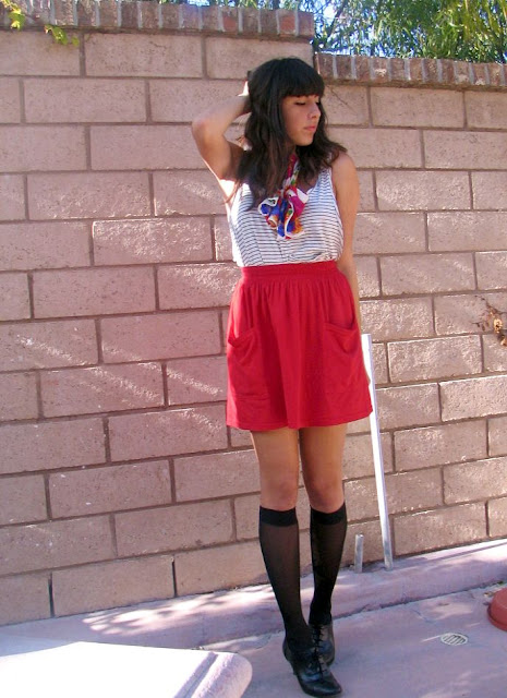(oversized striped tank- american apparel, skirt- american apparel, scarf- thrifted, oxfords- payless )